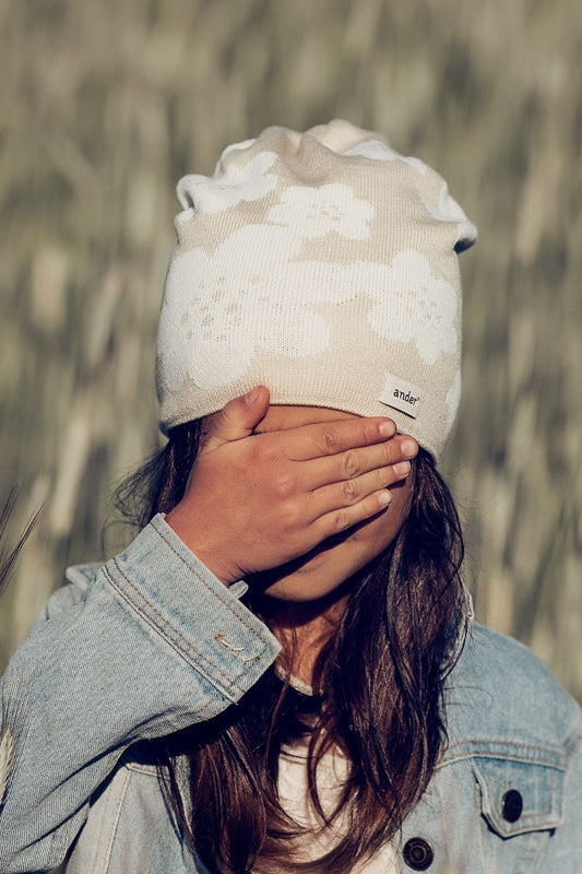ANDER Beanie Baumwolle Knotenmütze in hellbeige