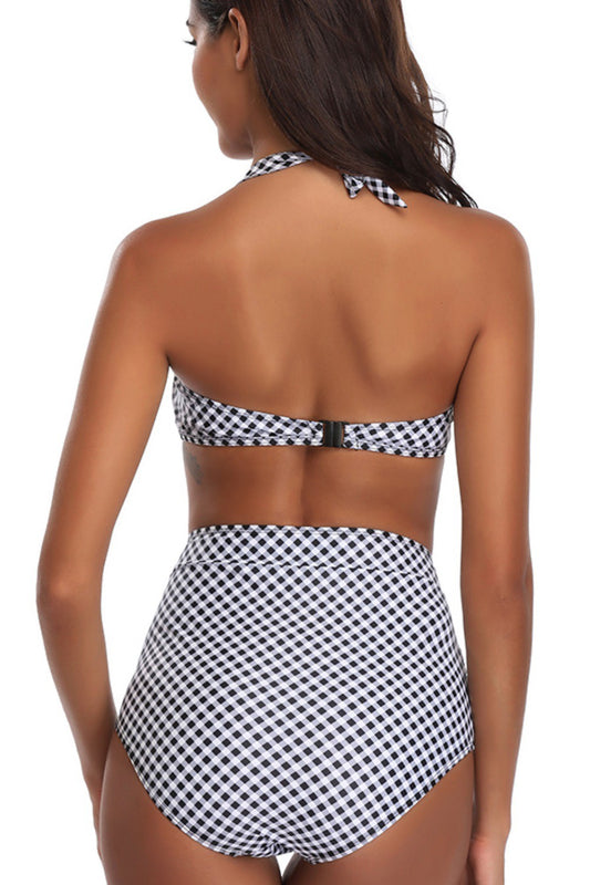 2-teiliger Badeanzug in schwarz-weiß Gingham