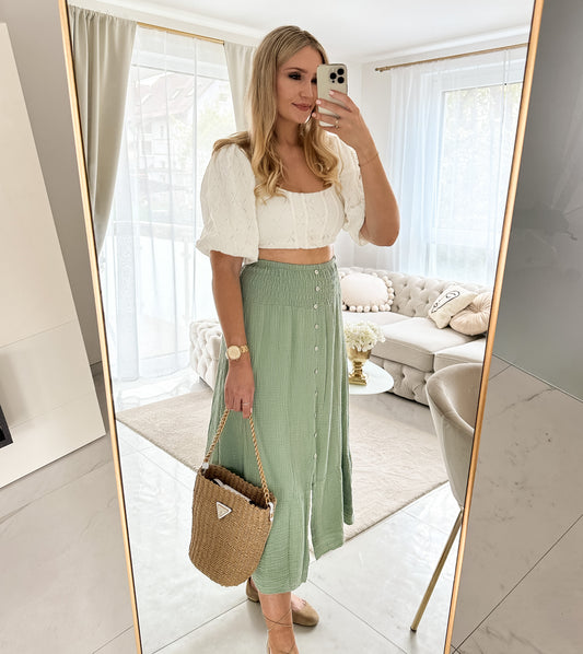 ALECIA Body in creme und braunem floralen Muster - Handmade