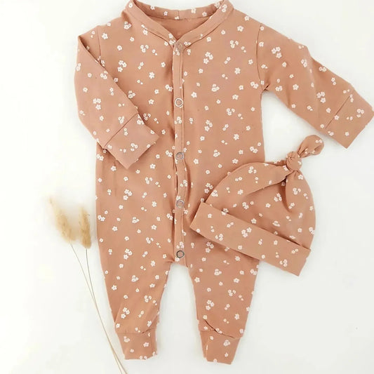 AMALIA Set Strampler mit Mütze in rosa mit Blümchenmuster 2-Tlg. - Handmade
