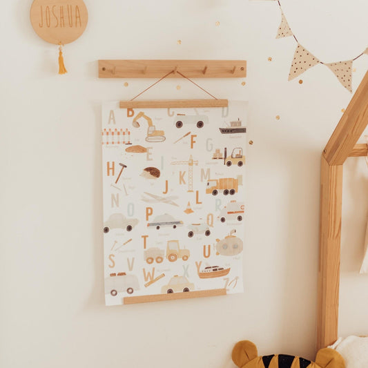 Poster Alphabet A4 Fahrzeuge & Werkzeuge