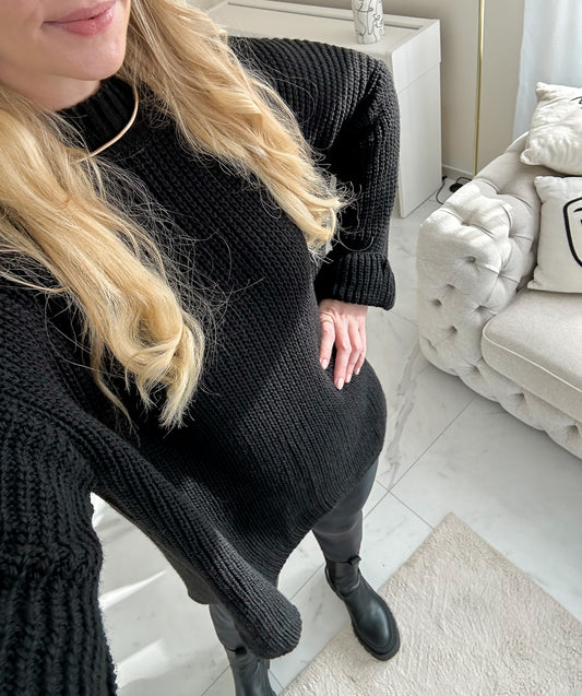 ZOELLA Long Pullover mit Seiten-Schlitz in schwarz