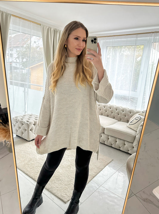 ZOELLA Long Pullover mit Seiten-Schlitz in creme