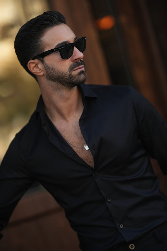 AusverkauftBLAX Elastisches Slim Fit Hemd in schwarz