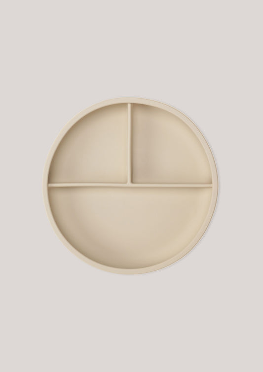 BOBBI Esslernteller aus Silikon mit Saugnapf und Aufteilungen in beige