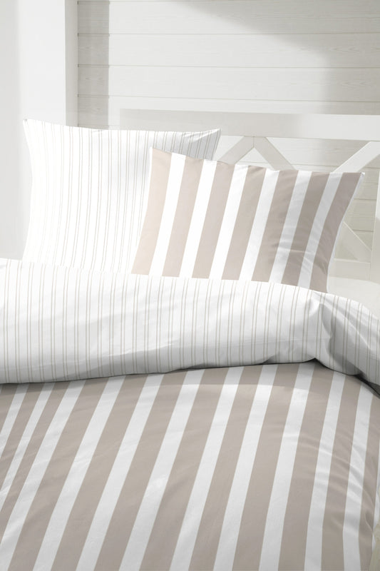 PRIMERA Perkal Bettwäsche taupe-weiße Streifen
