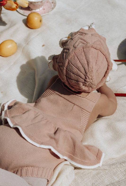 DANA Strick-Strampler Set mit Mütze in rosa weiß
