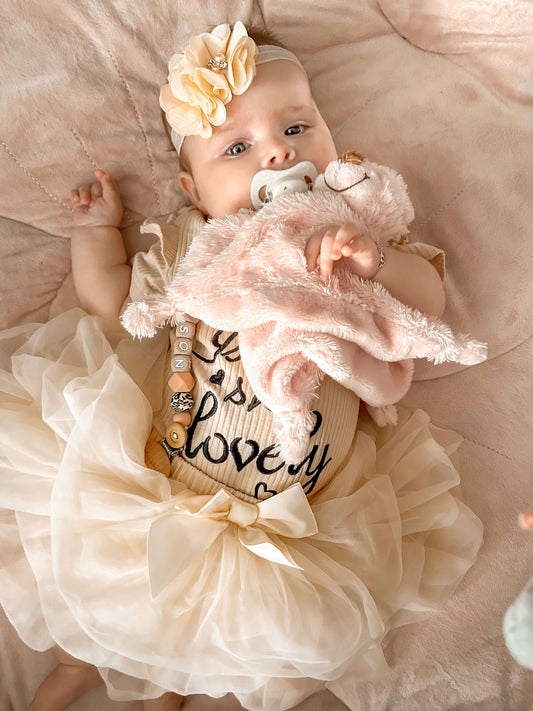 ZOE Rüschen Strampler und Haarband als Set in sandfarbe