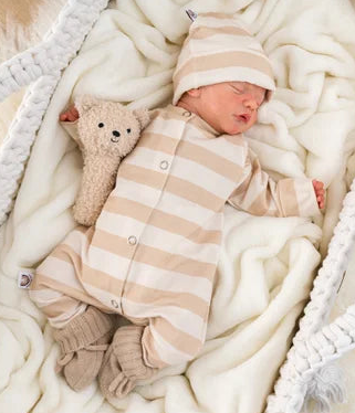 LIMA Strampler mit Mütze als Set in weiß und beigen Streifen