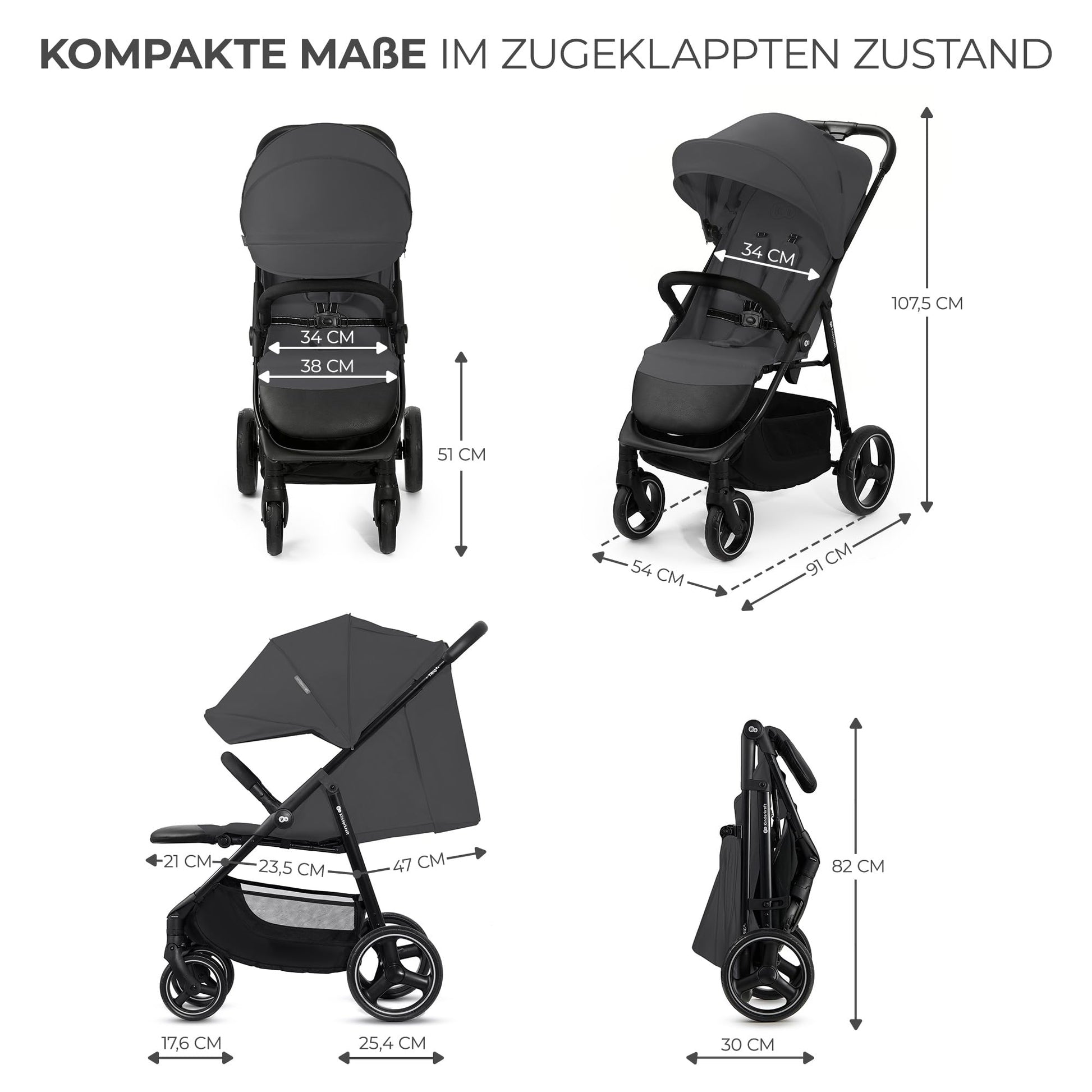 - 5-Punkt-Gurt: Der im Kinderwagen integrierte 5-Punkt-Gurt sorgt für maximale Sicherheit und Stabilität während der Fahrt.