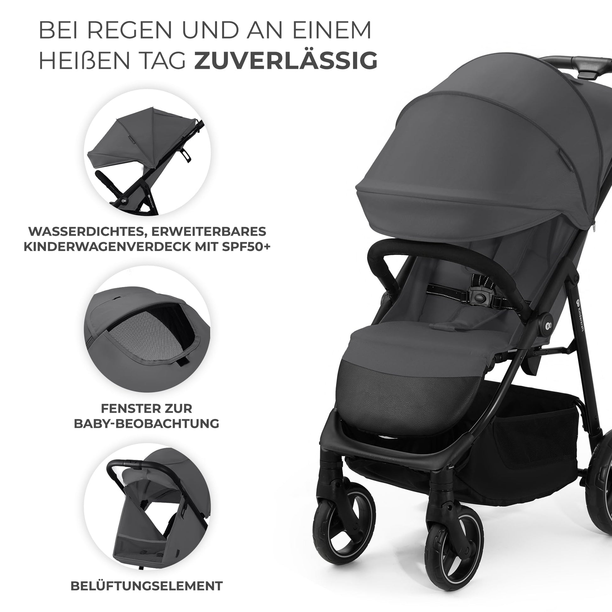 - 4-Rad-Dämpfung: Mit der 4-Rad-Dämpfung ist eine sanfte Fahrt auf verschiedenen Untergründen garantiert, sodass Ihr Kind immer komfortabel sitzt.