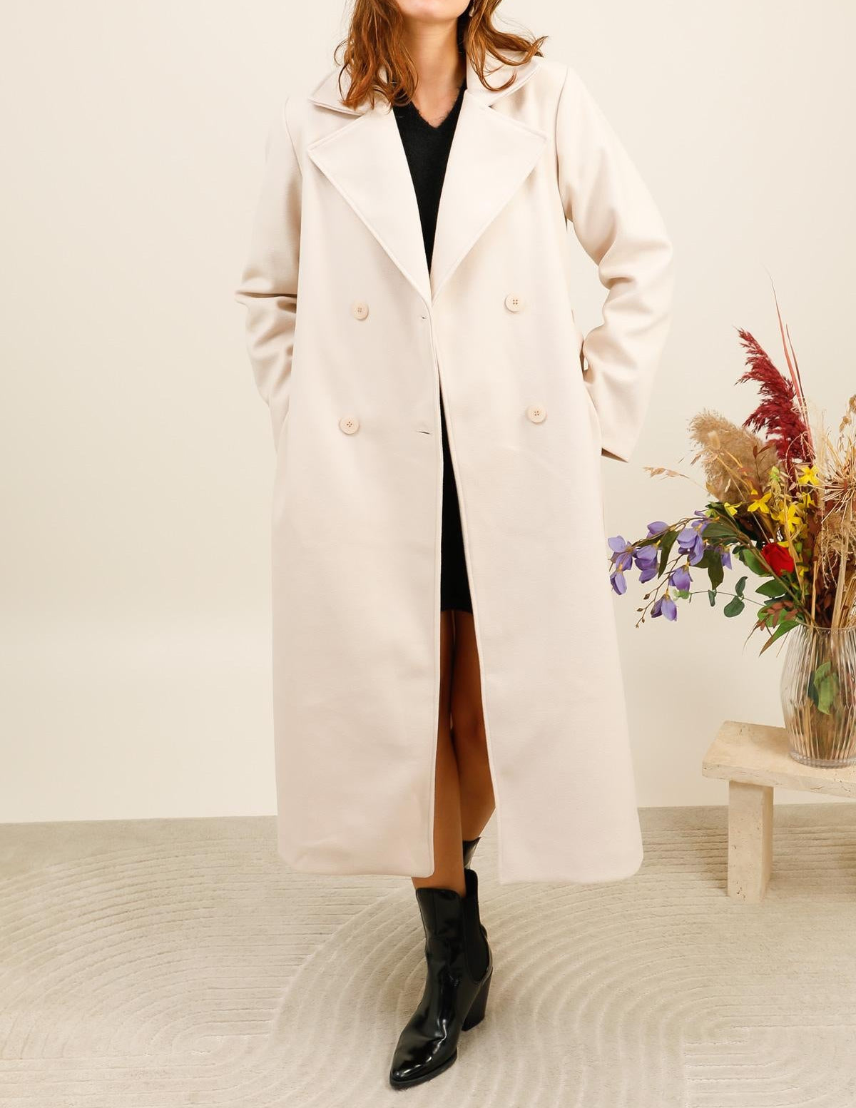 Der LARIA Mantel lang besteht aus 100% Polyester und ist mit einer 100% Polyester Fütterung versehen. Mit langen Ärmeln und einem soliden Design ist er perfekt für vielseitige Outfits geeignet. Ursprünglich aus Italien, setzt er ein hochwertiges Statement in jeder Garderobe.